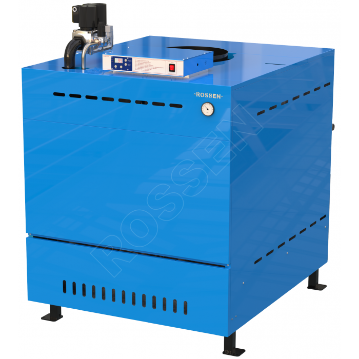 Котел RSA 300 имеет открытую топку и оборудован атмосферной горелкой. Теплообменник производится на Заводе Rossen, выполнен из оребренных труб с увеличенной поверхностью теплоотдачи.