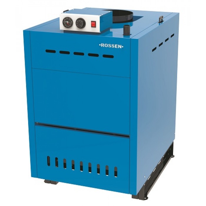 Котел RSA 100Э имеет открытую топку и оборудован атмосферной горелкой. Теплообменник производится на Заводе Rossen, выполнен из оребренных труб с увеличенной поверхностью теплоотдачи.