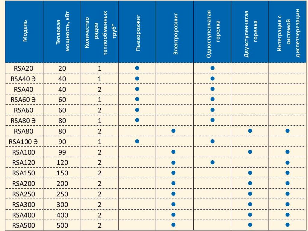 • Газовый котел RSA работает на сжиженном и природном газе - универсален в топливе;