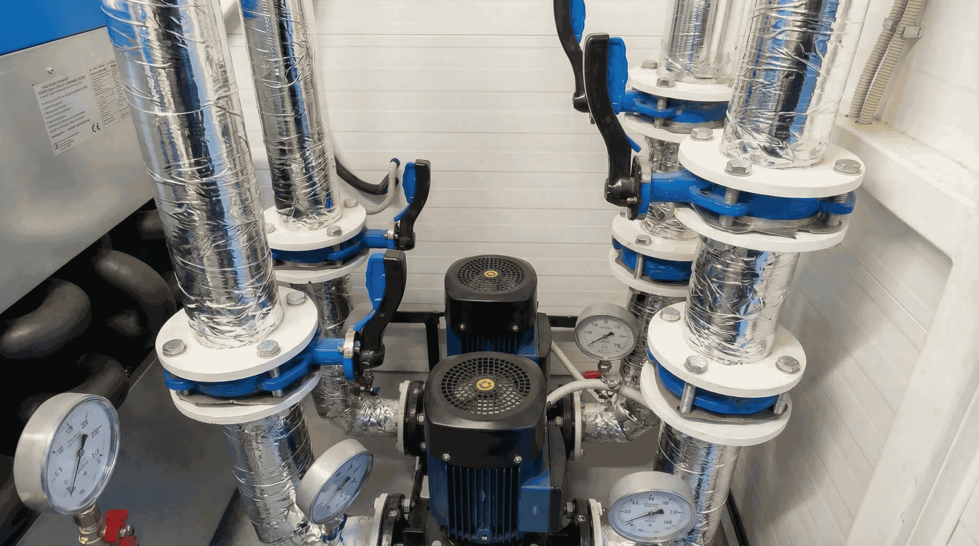 • тепломеханическая обвязка водяного контура фирмы Meibes или Danfoss;