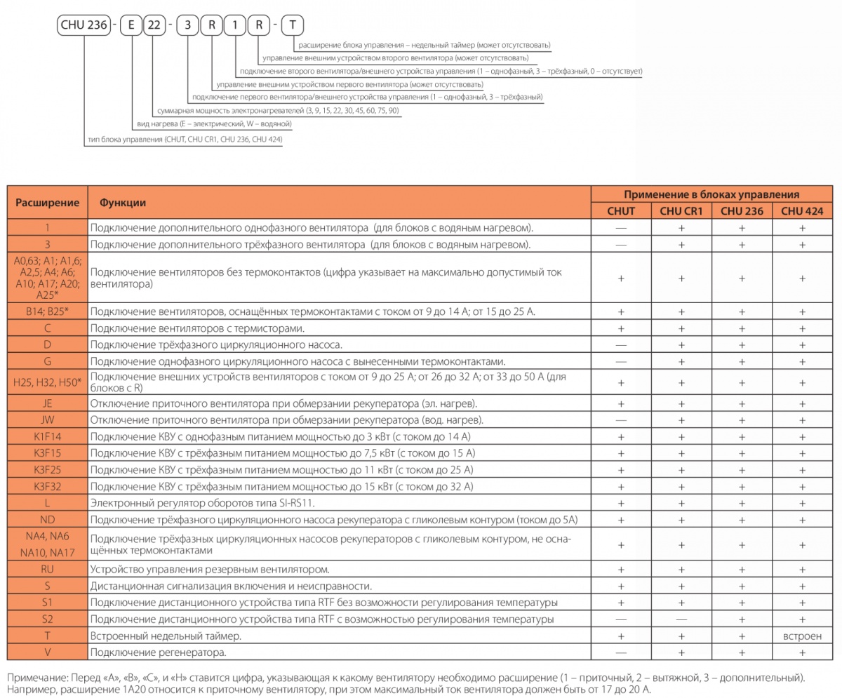 Характеристики блока управления CHU 220-W-31